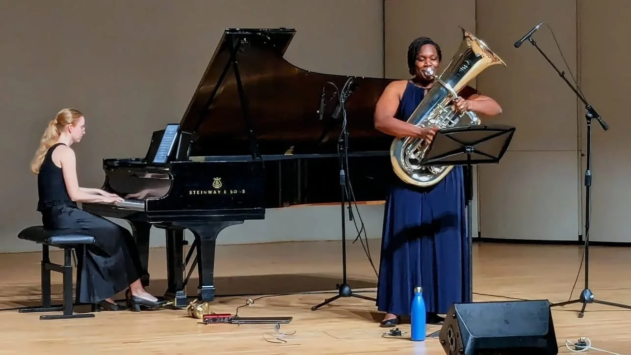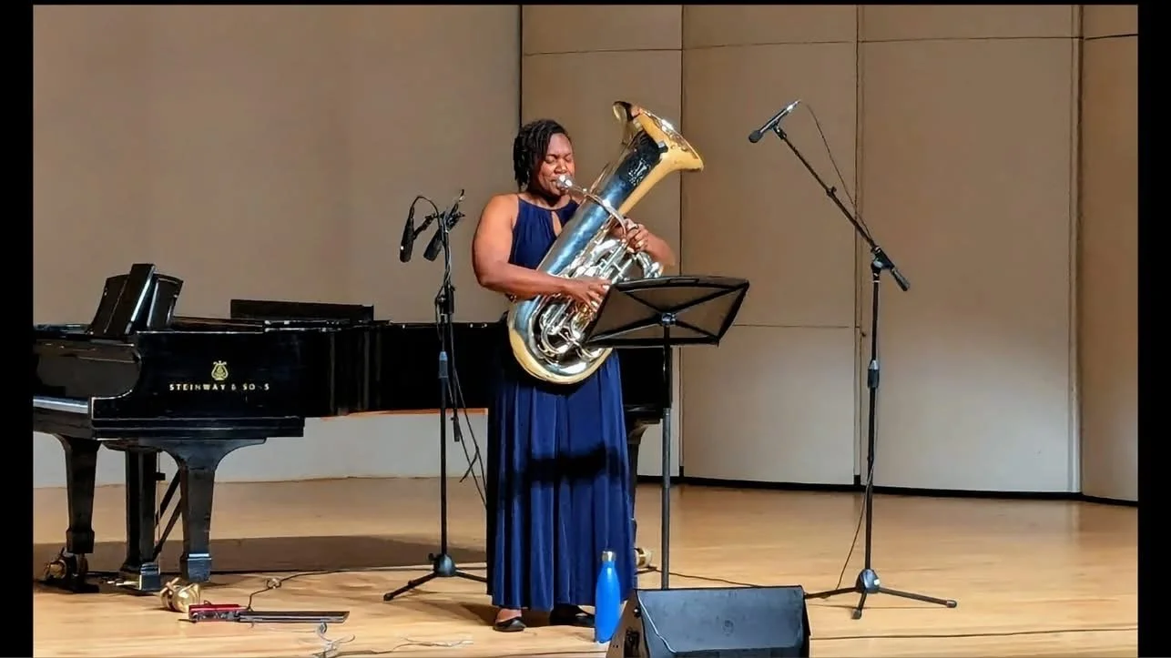 My performances aren’t traditional recitals—they’re immersive experiences. I use tuba, spoken word, and narrative structure to pull audiences into stories about identity, grief, joy, resilience, and becoming more fully yourself. Every program is built to meet listeners where they are and invite them into connection.